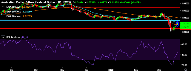 - AUD/NZD is currently trading around 1.0240 marks.