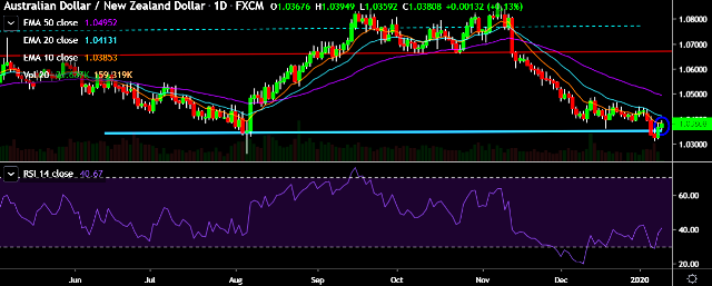 - Pair made intraday high at 1.0394 and low at 1.0359 marks.