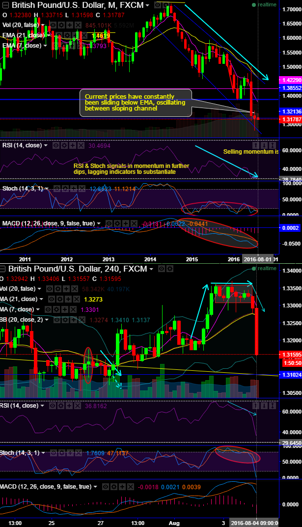 Well, as anticipated BOE eased with 25 bps to keep bank rates at 0.25%. Cable continued to tumble into deep tunnel.