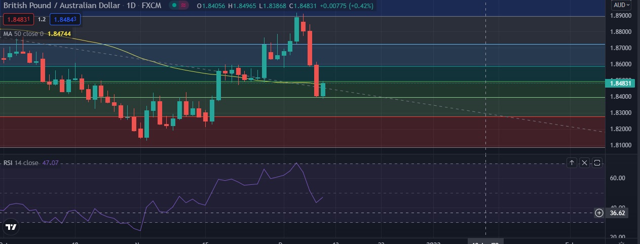 • Immediate support is seen at 1.8395 (38.2%fib) and break below could take the pair towards 1.8274 (23.6%fib).