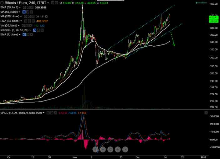 - BTC/EUR has declined till 403 at the time of writing and is currently trading around 413.