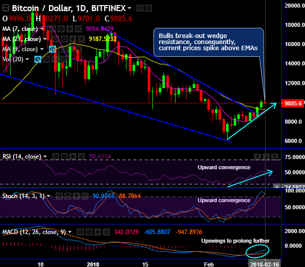 The bulls, for now, manage to break-out wedge resistance, consequently, the current prices spike above DMAs.