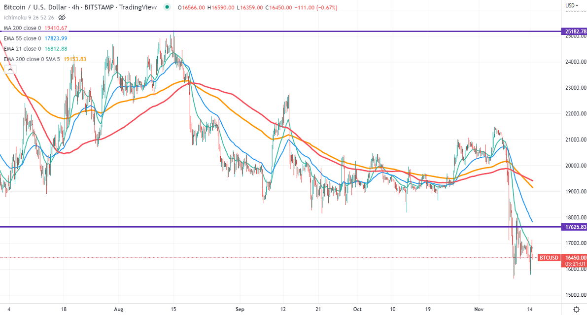 BTCUSD recovered slightly after Binance CEO's positive comments. He announced that Binance to set up a recovery fund to support crypto projects in a liquidity crisis. Bitcoin lost more than 21% the previous week as the collapse of FTX forced investors to book profits. Bitcoin hits a high of $17130 at the time of writing and currently trading around $16576.