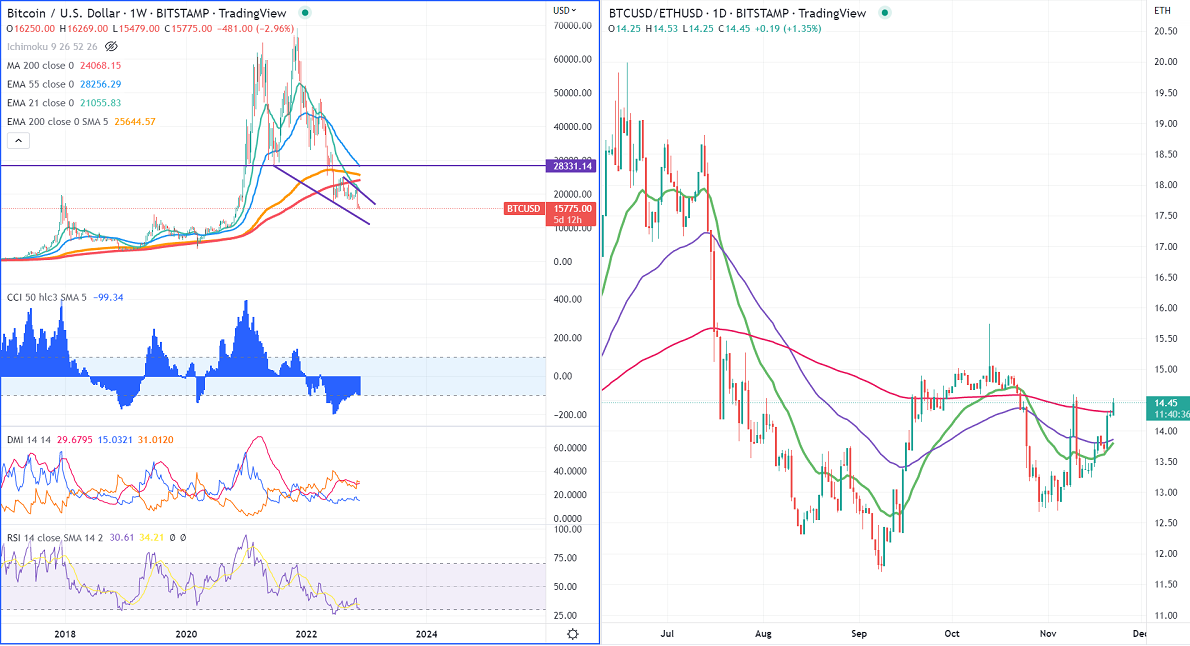 BTCUSD is consolidating in a narrow range between $15784 and $17130 after a major sell-off. The pair dropped more than $6000 after the FTX collapse. The FTX drainer, hacker swapped 5000 ETH for $347 renBTC yesterday dragging crypto further lower. BTC hits a low of $15479 at the time of writing and currently trading around $15729.