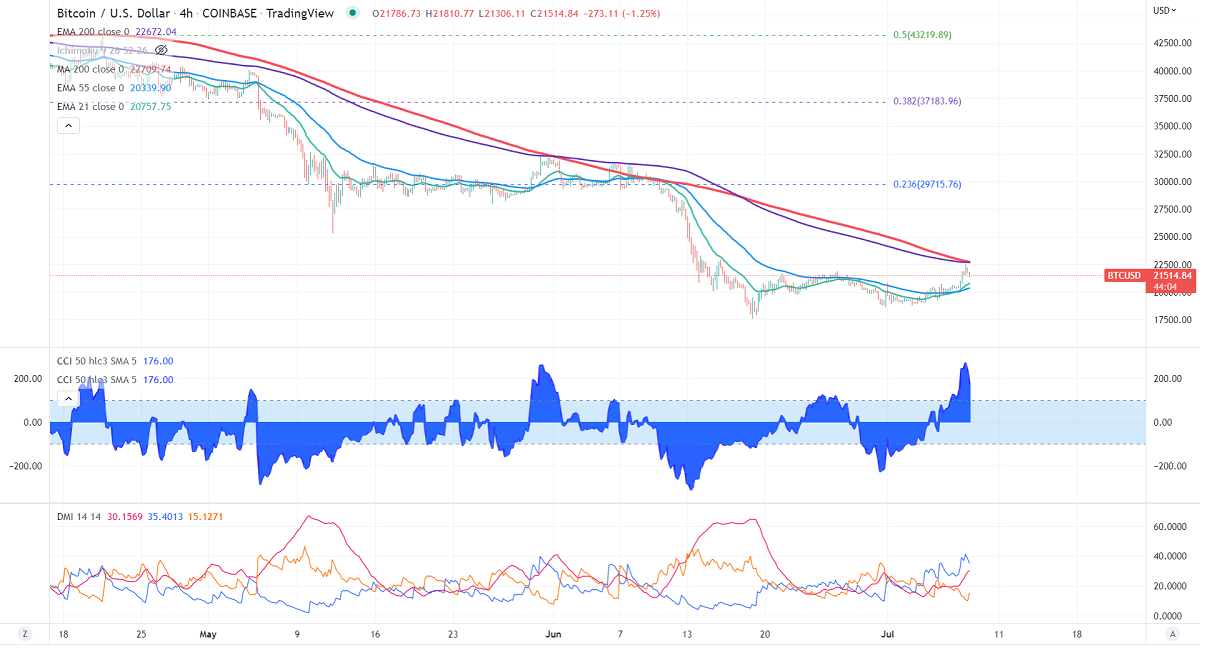 BTCUSD showed a dead cat bounce after a massive sell-off. The pullback in equities is supporting BTC at lower levels. Market eyes US Non-farm payroll for further direction. Mt.Gox releases updates on Bitcoin repayment could put pressure on the pair at higher levels. It hits a high of $22490 at the time of writing and currently trading around $21580.