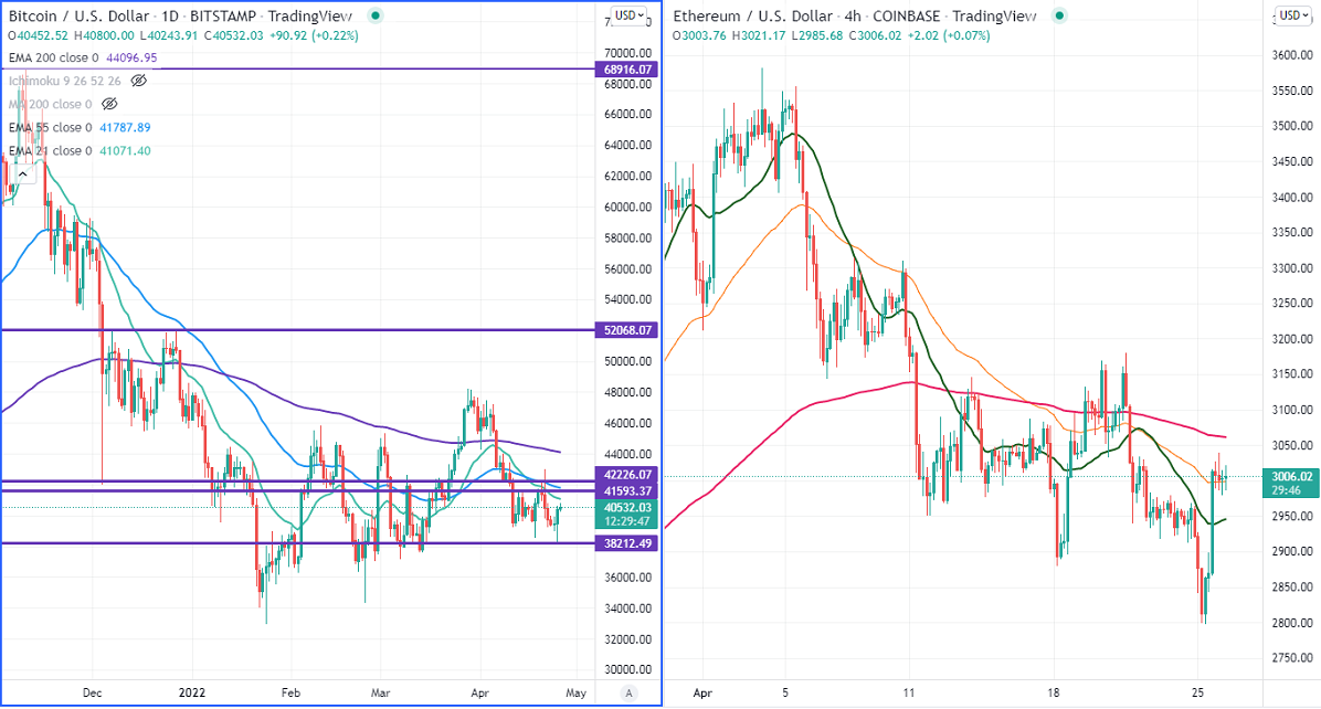 BTCUSD regained above $40000 as the Bitcoin hash rate hits an all-time high of 271.19 exahash per second (EH/S). It hits an intraday high of $40799 and is currently trading around $40547.