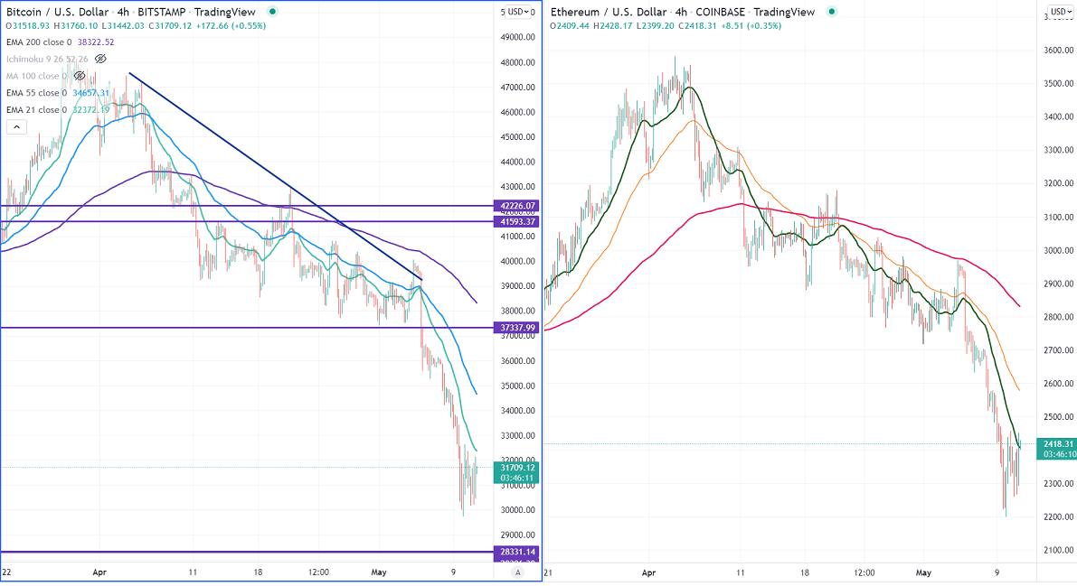 ETHUSD regained the following in the footsteps of Bitcoin. It hits a low of $2458 and is currently trading around $2417.