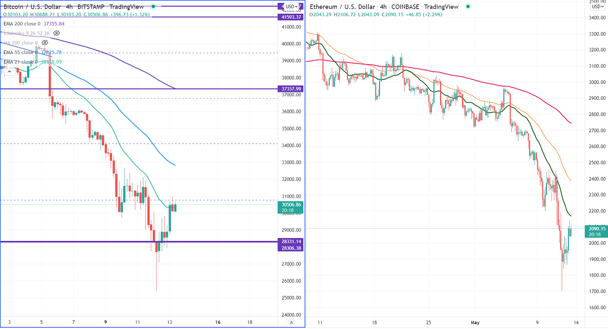 ETHUSD surged above $2000 following in the footsteps of Bitcoin. It hits an intraday high of $2138 and is currently trading around $2086.