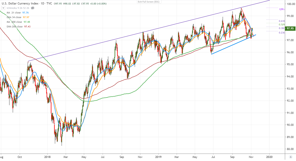 On the flip side, near term support is around 97.75, any violation below will drag the index down till 97.40/97.