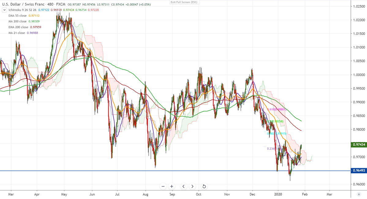 USDCHF recovered slightly after a long consolidation for the past 2-weeks. It has formed a minor bottom around 0.96130 and shown a jump of more than 100 pips. The broad-based buying US dollar is supporting prices at lower levels. DXY is holding above 200-day MA for the past 4 trading days and a jump till 98.55 is possible.