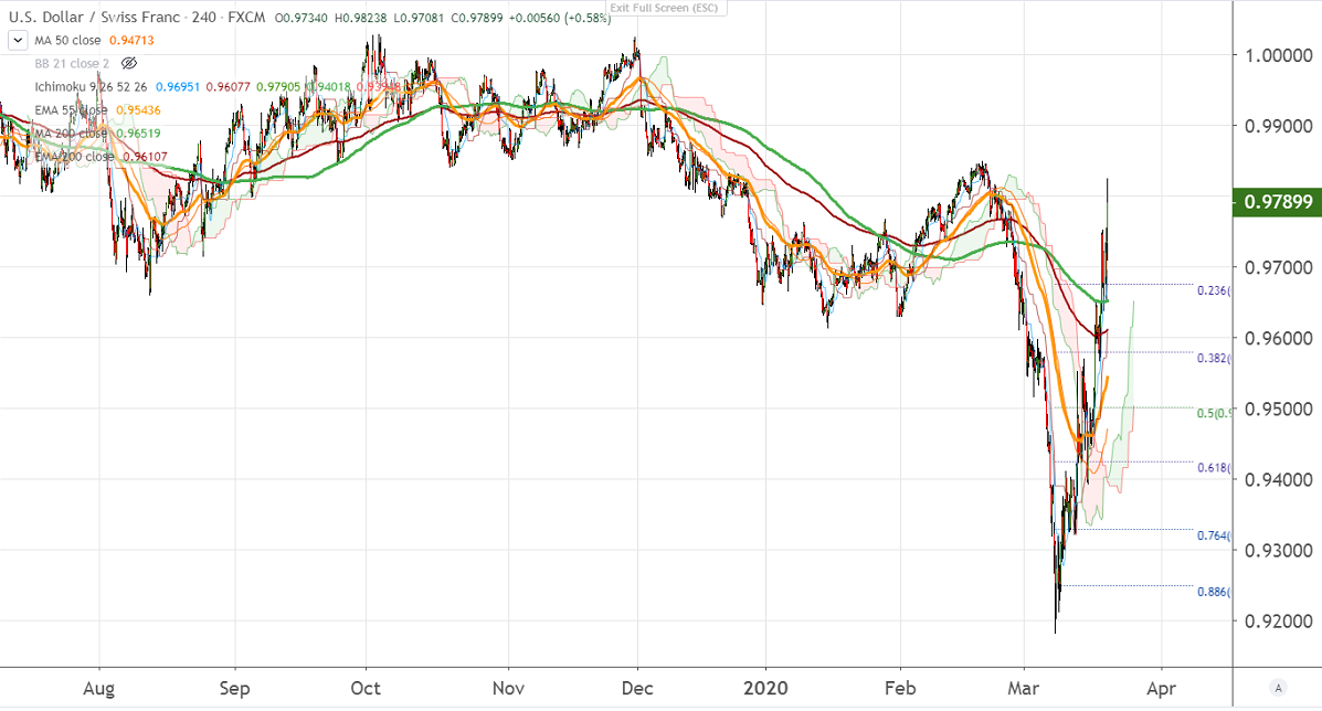 USDCHF trading higher for 2 nd consecutive week and jumped more than 550 pips. The jump was mainly from the major bottom 0.9185. The recovery was due to a strong US dollar on account of the outbreak of coronavirus. DXY continues to trade higher and jumped more than 150 pips from yesterday's low of 97.98.
