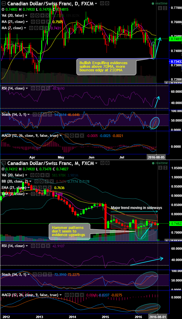 It is currently trading at 0.7481 levels and leading indicators are converging upwards to the rallies.