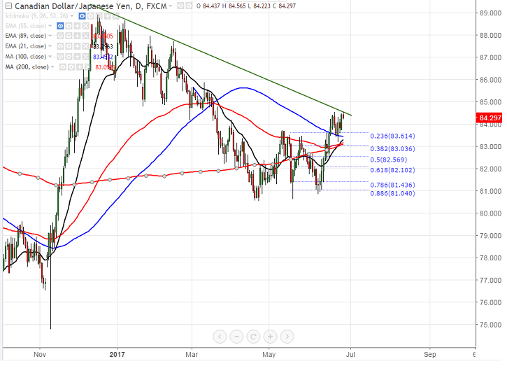 - On the higher side, major resistance is around 84.55 and any break above targets 85.89 (Mar 10th 2017 high)/86.17.