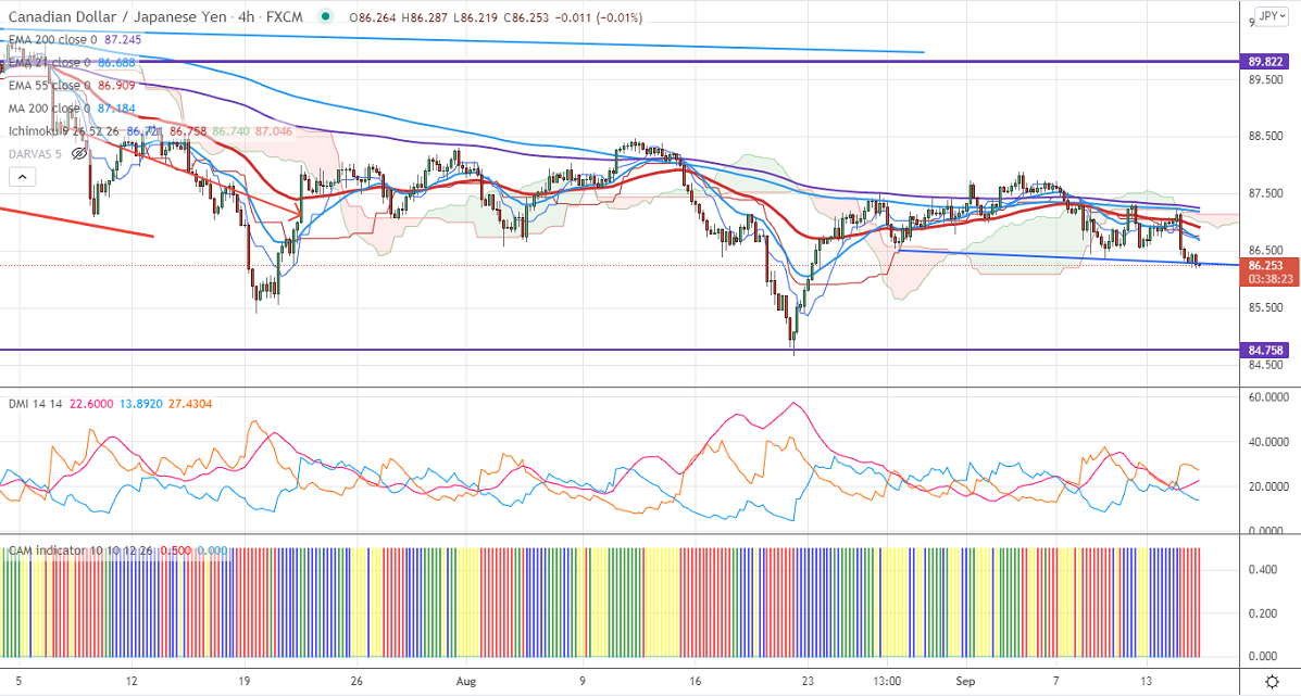 CADJPY is trading weak for the second consecutive days and jumped more than 100 pips. The decline was was mainly due to the weak Canadian dollar. The weak Canadian manufacturing sales and spread of delta variants across the globe are putting pressure on the Canadian dollar at higher levels. The intraday trend of CADJPY is bearish as long as support 88 holds.