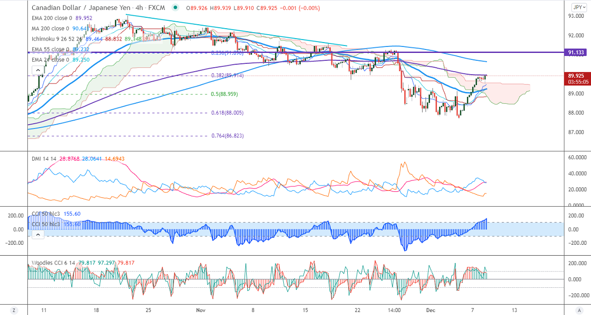 The significant support is at 89.20, any decline below that level will drag the pair down to 88.80/88. Major bearishness if it breaks below 87. A dip to 84.89 is possible.