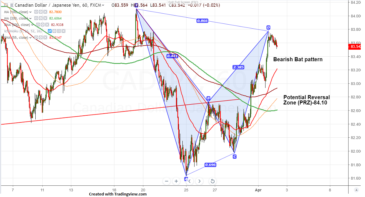On the lower side, near term support is around 83.35 and any violation below will drag the pair to next level till 82.93 (300-H EMA)/82.60 (200- H MA).