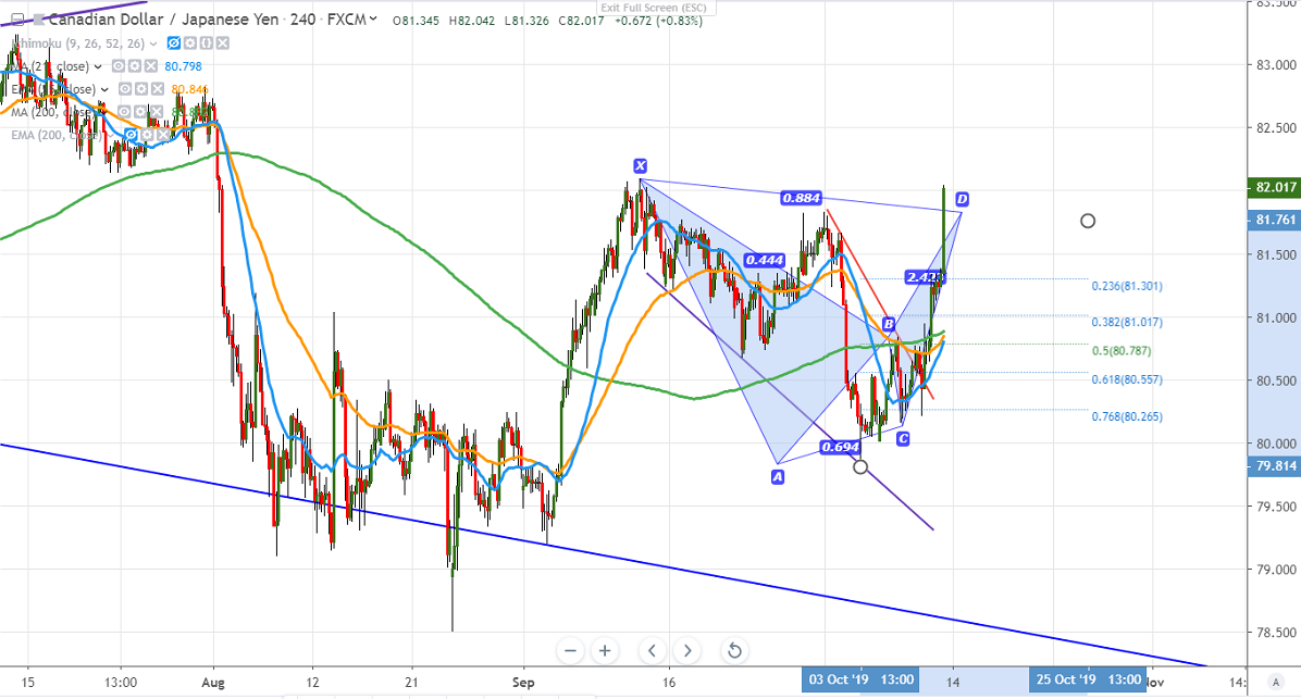 CADJPY is trading higher for 3rd consecutive days and jumped more than 150 pips on weak yen. USDJPY recovered sharply and nay break above 108.50 confirms further bullishness. The Canadian dollar gaining strength against USD on slight easing of US-China trade optimism.