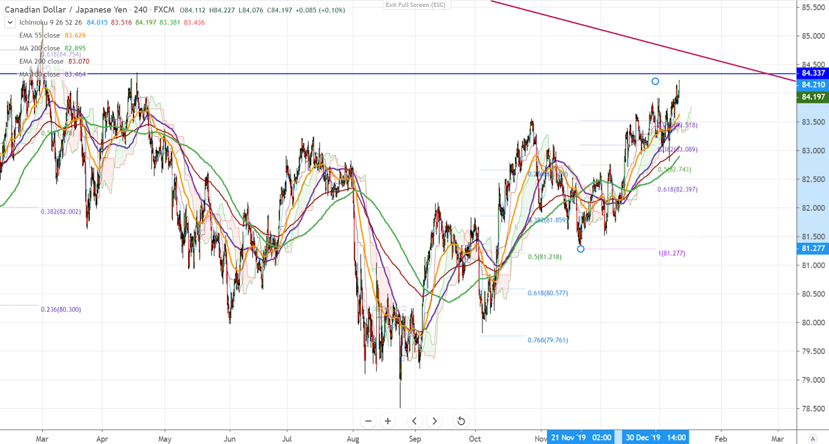 Technically, CADJPY is trading well above 84 levels and immediate resistance to be watched is 84.35. Any violation above targets 85.