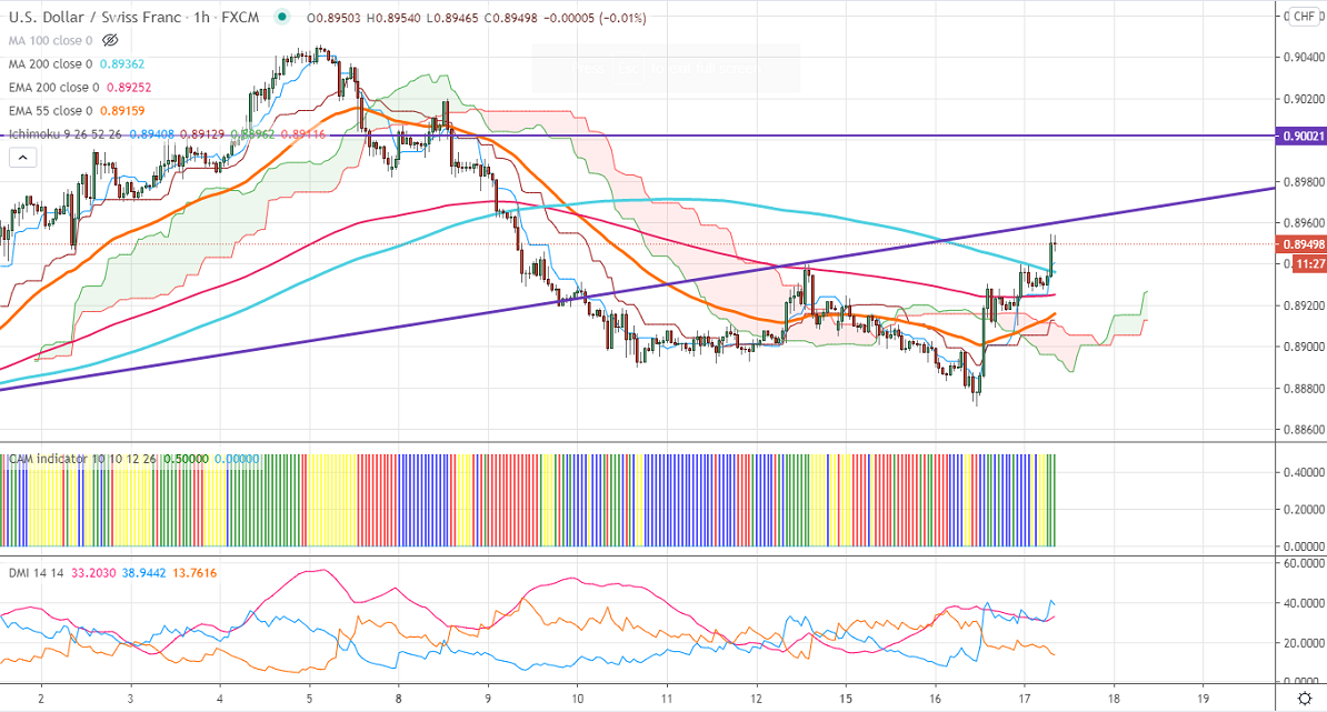 CHF/JPY has formed almost a double top around 118.85 and declined nearly 50 pips on Swiss franc weakness. The jump in US 10- year bond yield is supporting USDCHF at lower levels. The pair is holding above 0.8900, any indicative violation above 0.8950 will take the pair to 0.9000/0.9040. But slight weakness in the yen is preventing the pair from the further downside. USDJPY is holding well above 105, a jump to 106.40 is possible. The intraday trend of CHFJPY remains bearish as long as resistance 118.85 holds.