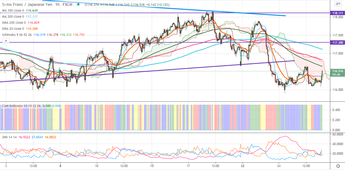 It is good to buy on dips around 116.35-40 with SL around 115.90 for a TP of 117.20/117.80.