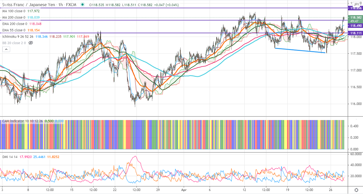 It is good to buy on dips around 118-78-80 with SL around 118.40 for a TP of 119.60.