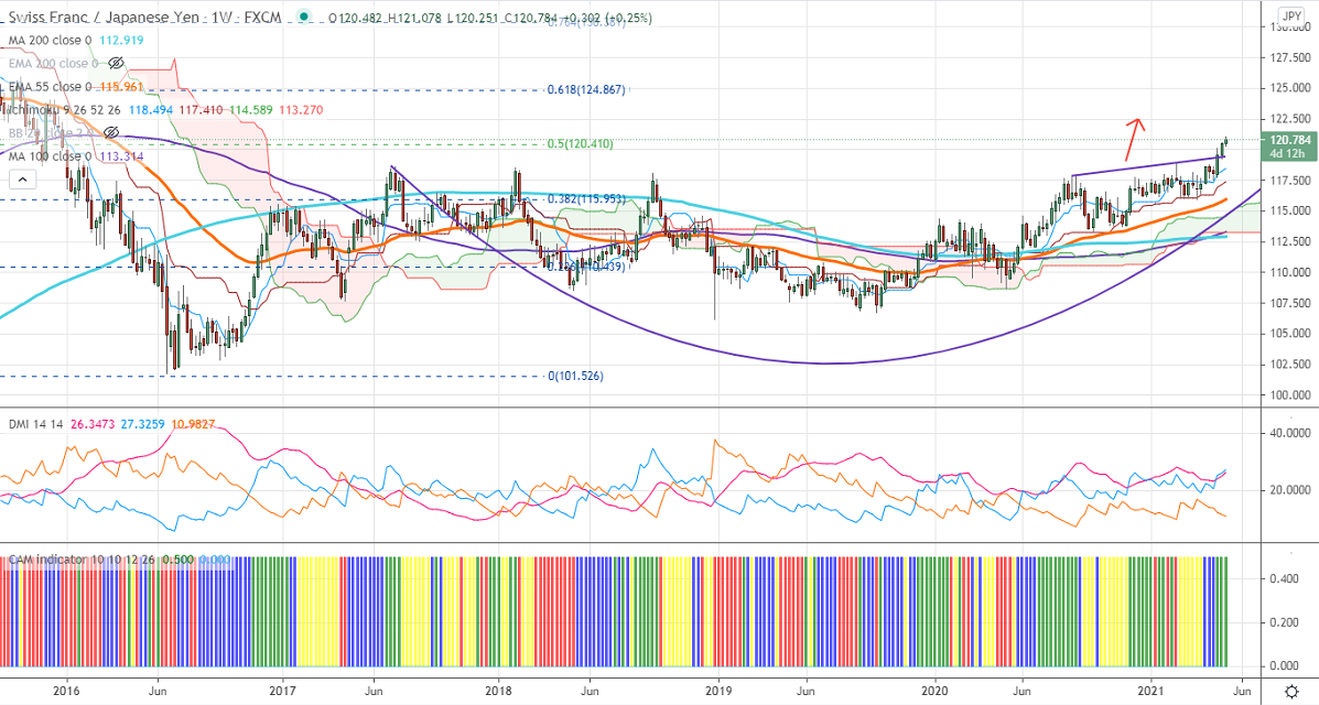 As per our analysis, CHF/JPY is trading on the higher side and jumped to 121.07. The broad-based buying in the Swiss franc is supporting the price at lower levels. USDCHF hits a 2-1/2 month low and holding below 0.9000 levels. The pair has closed below 200- day MA for the second consecutive days and confirms major bearish continuation. A dip to 0.8870/0.8830 is possible. USDJPY paired some of the gains made today despite a jump in US bond yield. The intraday trend of CHFJPY is bullish as long as support 120 holds.