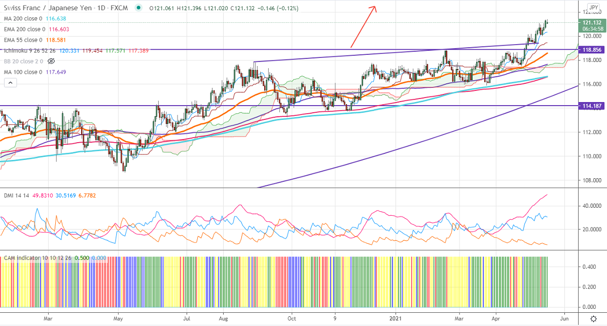 It is good to buy on dips around 120.50-55 with SL around 120 for a TP of 122.