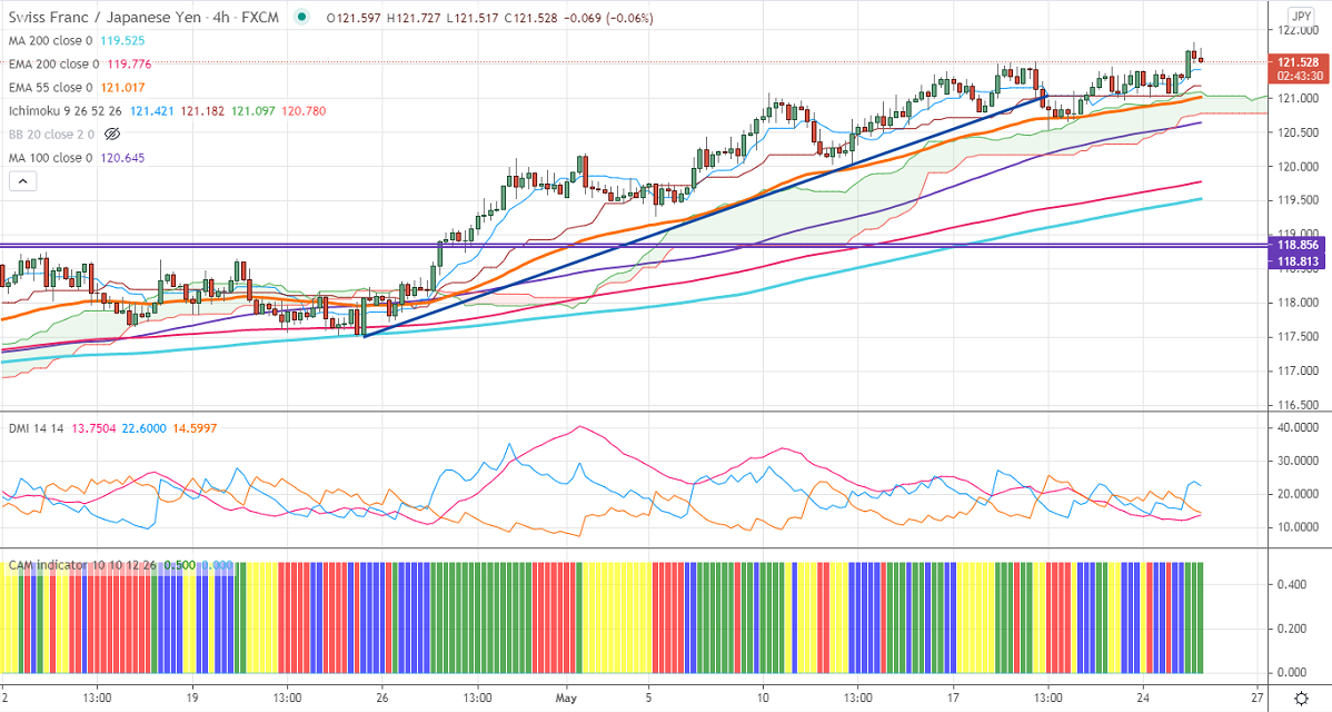 It is good to buy on dips around 121.40-45 with SL around 120.95 for a TP of 123.