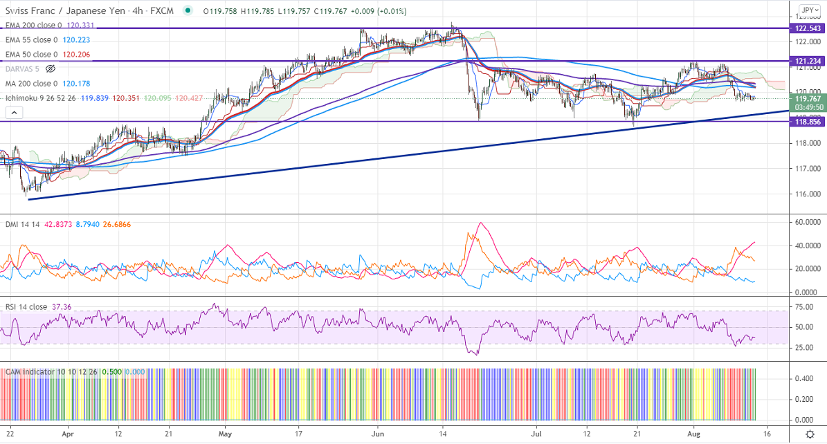 Technically, near-term support is around 119.60 and any indicative break below will drag the pair down till 119/118.65/118.