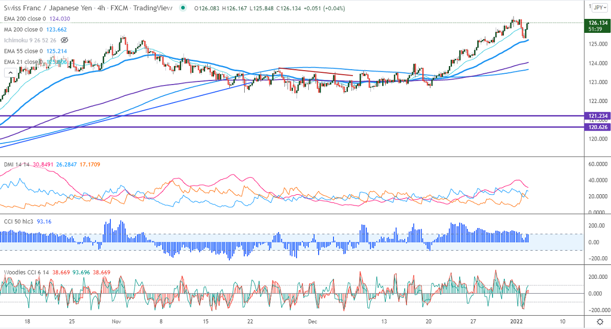 The pair recovered after taking support near 55-4H EMA. The weakness in the Japanese yen is due to a surge in US treasury yield. USDJPY hits five years high and holds above 115.50. A jump till 117/117.80 is possible. The USDCHF showed a minor pullback after hitting a low of 0.91020. CHJPY hits a high of 126.16 and is currently trading around 126.114.