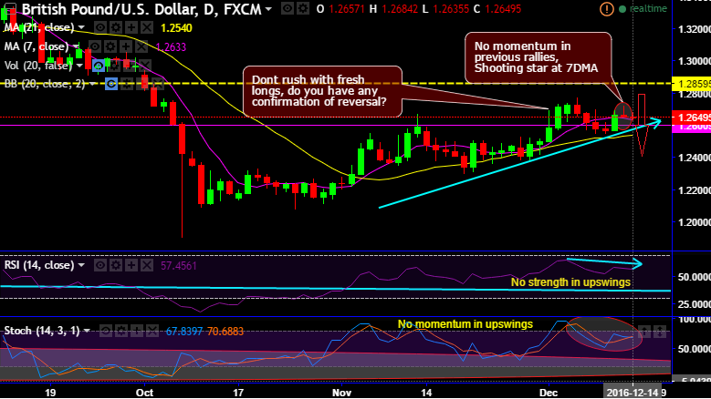Instead, shooting star pattern has been appeared at 1.2657 yesterday, struggling for bullish momentum (refer both daily and monthly technicals), both leading indicators confirm any bullish momentum.