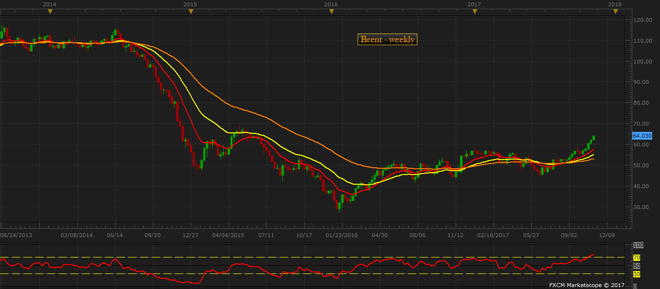 Brent crude is currently trading at $64 per barrel.