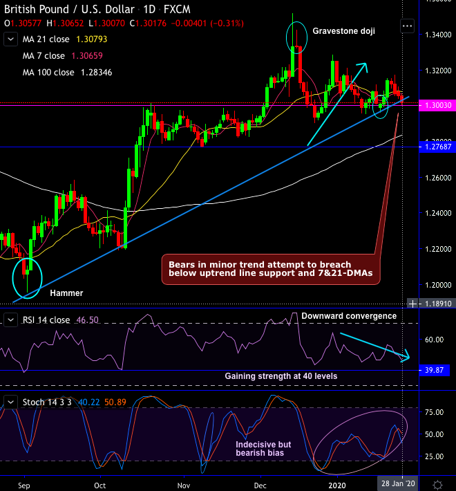 Trading and hedging tips: At spot reference: 1.3012 levels, on trading perspective, contemplating above technical rationale, it is advisable to execute boundary spread options strategy with upper strikes at 1.3080 and lower strikes at 1.2950 levels, thereby, one can achieve certain yields as long as the underlying spot FX remains between these two strikes on the expiration.