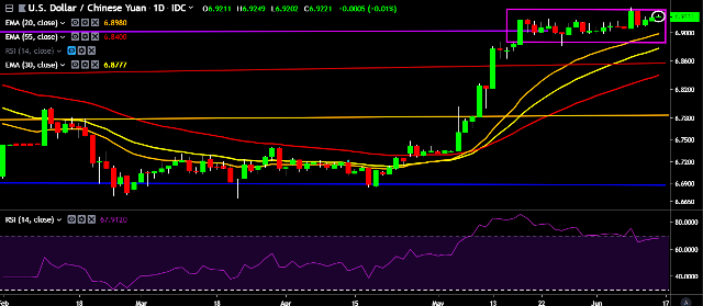 We prefer to take long position on USD/CNY only above 6.9297, stop loss 6.91 and target of 6.94/6.9525.
