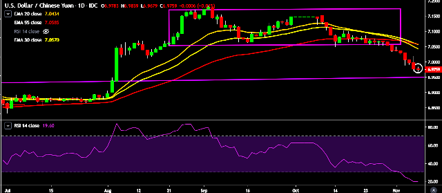 - Alternatively, a daily close below 6.9765 will drag the parity down towards key supports at 6.9525, 6.9297 and 6.88 marks respectively.
