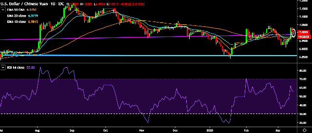 - A sustained close above 7.0282 marks will test key resistances at 7.0388, 7.0425, 7.05, 7.0670 and 7.1030 marks respectively.