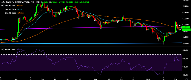 - It made intraday high at 6.9854 and low at 6.9703 levels.