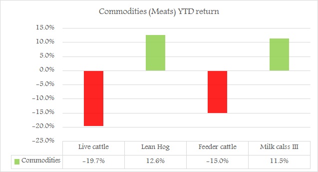 - In this pack, Lean hogs have been the best performer with 12.6 percent YTD gains, followed by Class III Milk (11.5 percent).