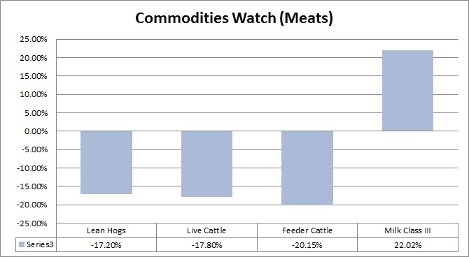 - The rest of the pack haven’t performed well. The worst performer has been feeder Cattle, which is down by 20.1 percent so far this year, followed by Live Cattle (-17.8 percent), and lean hogs (-17.2 percent).