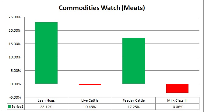 - In this pack, Lean Hogs has been the best performer with 23.1 percent YTD gains after it was up almost 7 percent in 2016.