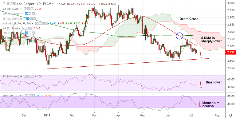 - 5-DMA is sharply lower, upside capped at 50-DMA