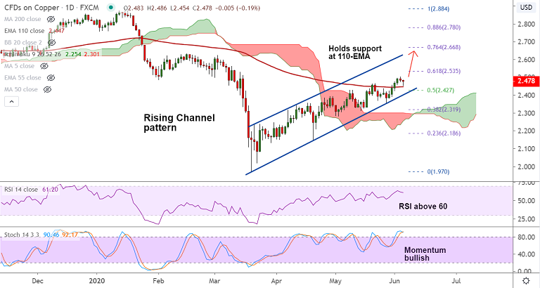 Break below 110-EMA will see dip till channel base at 2.410. While, resumption of upside could see a jump till 200-DMA at 2.554.