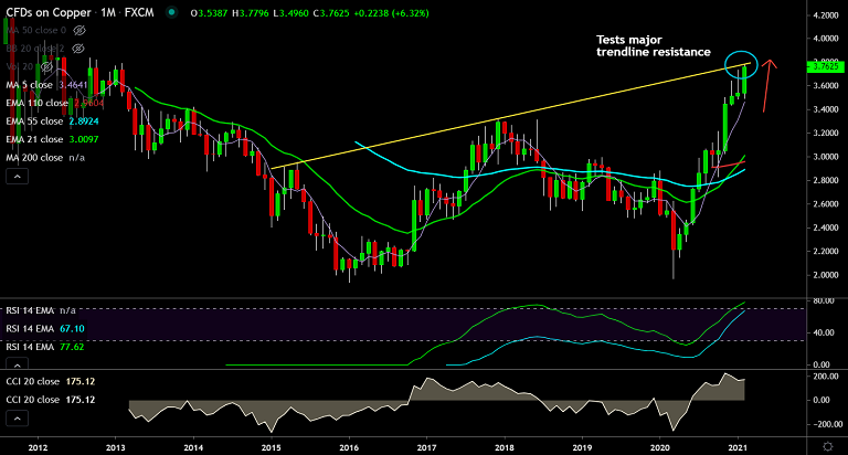 Copper bulls remain in charge, carry prices to new highs since February 2013. Outlook continues to remain bullish with no major signs of exhaustion.