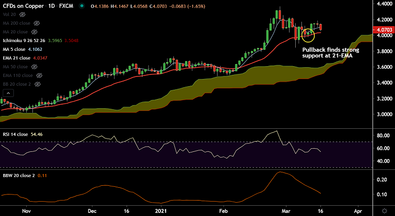 21-EMA is strong support at 4.034, break below will change near-term bias to bearish.