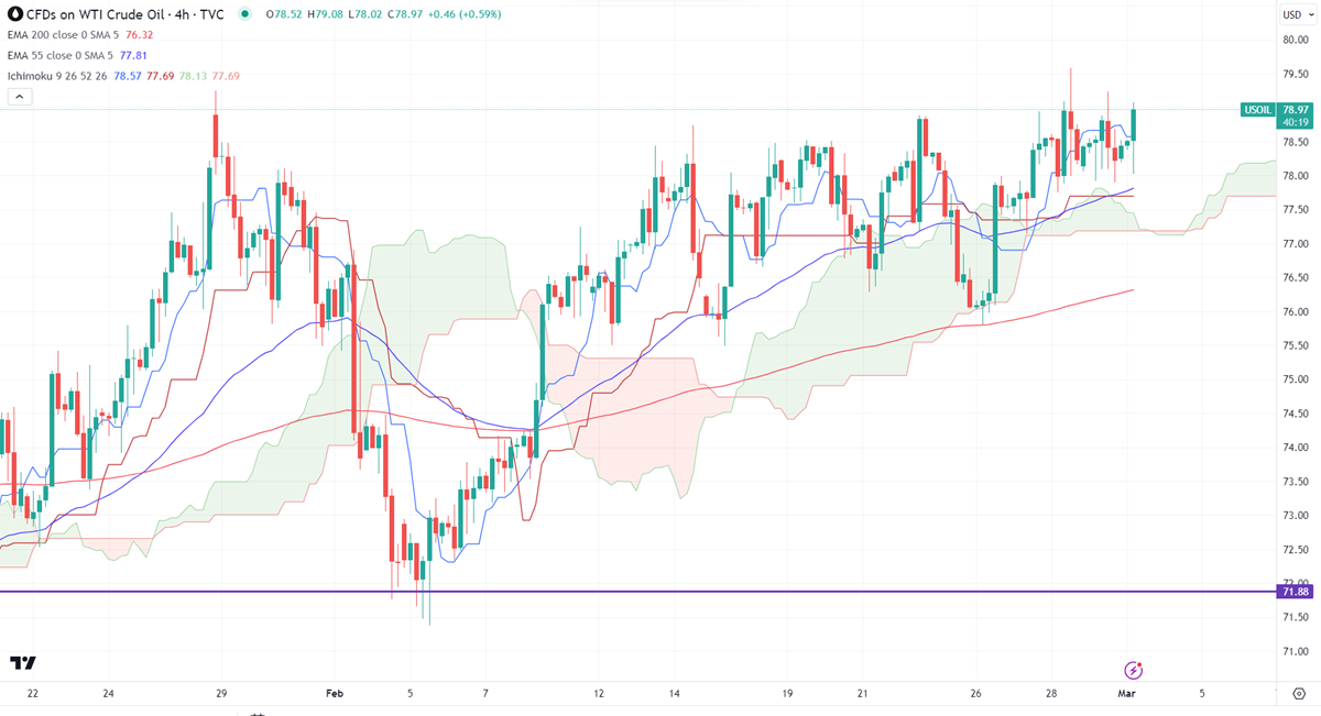WTI crude oil pared some of its gains despite being weak in US inflation. US Headline rose 0.30% m/m in Jan, in line with the estimate. Core PCE came at 0.40%, matched forecasts.