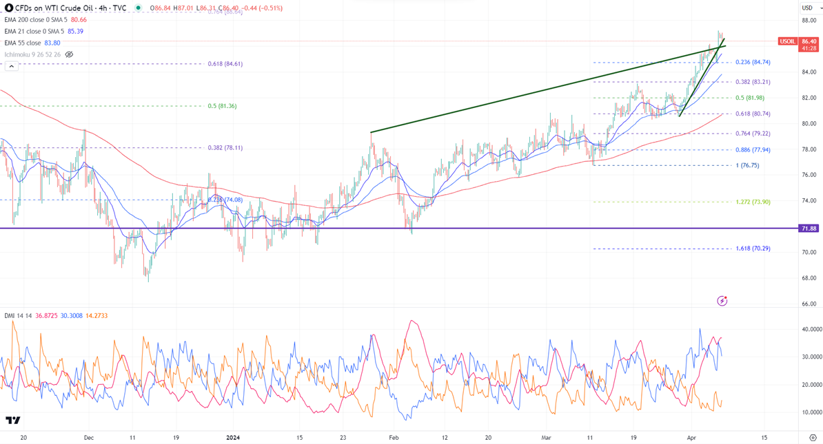 WTI crude oil hit a seven-month high due to supply disruption. It hit a high of $87.18 yesterday and is currently trading at $86.56.