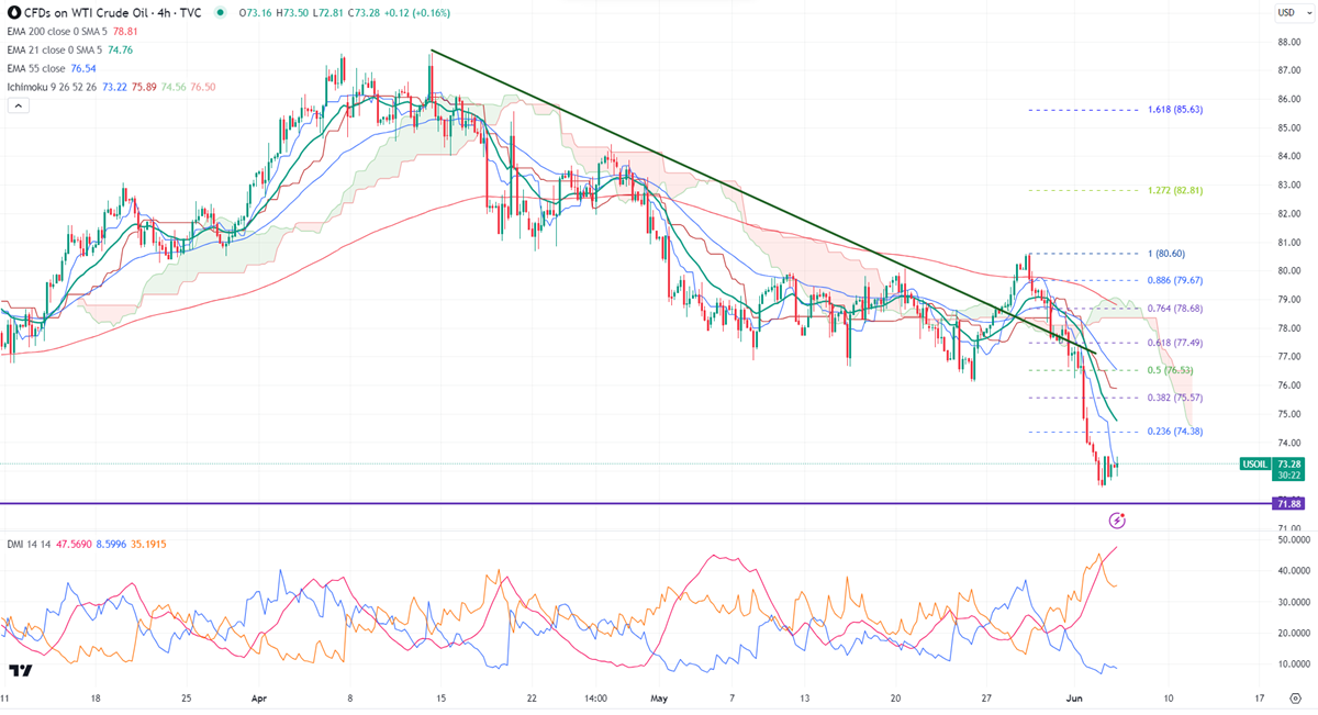It is good to sell on rallies around $74 with SL around $75 for a TP of $70.