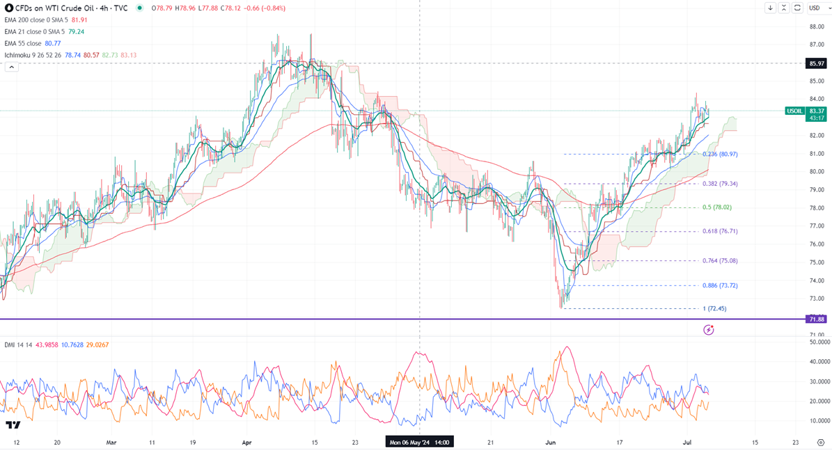 WTI crude oil pared some of its gains on weak US jobs data. It hit a low of $82.42 yesterday and is currently trading at $83.36.