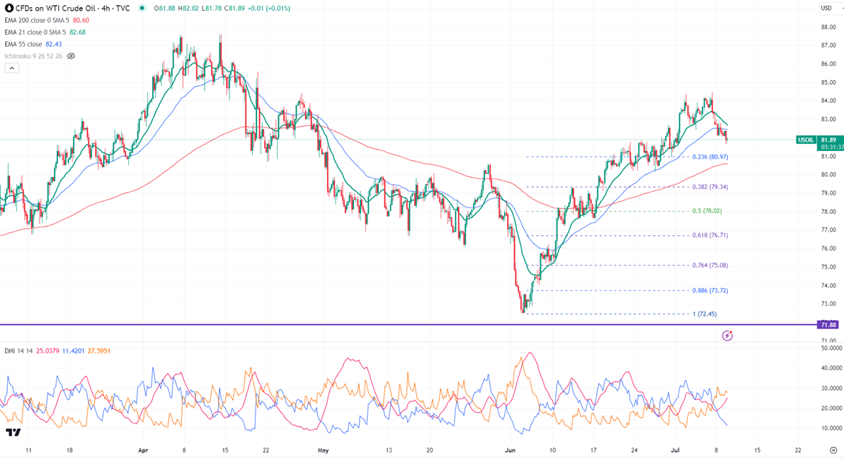 WTI crude oil trades weak for the third consecutive day on demand concern. It hit a low of $81.69 at the time of writing and is currently trading at $81.69.