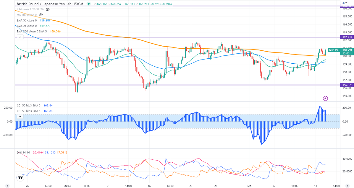 The pair has taken support near 200-4H EMA and shows a minor pullback. Any close below 160 confirms minor bearishness.